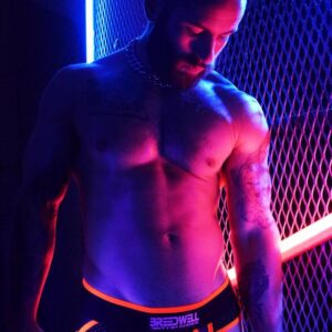 The bold, brash, and badass new NEOGEAR JOCKSTRAP redefines fetishwear with soft, flexible, and form fitting neoprene fabrics – a first for BREEDWELL. The NEOGEAR JOCKSTRAP features comfortable pouch with mesh inserts to let your junk breathe free; a premium PVC patch logo above the crotch, and a D ring above the butt. The trim fabric is UV blacklight reactive so take this bad boy out to your next glow party and show off what you got, this jock will get you jacked!