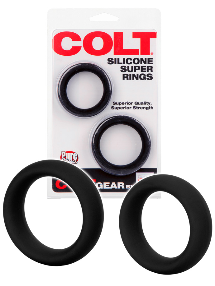 Colt Silicone Rings includes durable, stretchy and multifunction rings. The two different rings are wider like other rings and provide a better fit on your penis. The rings made of body safe, unscented and phthalate free silicone.