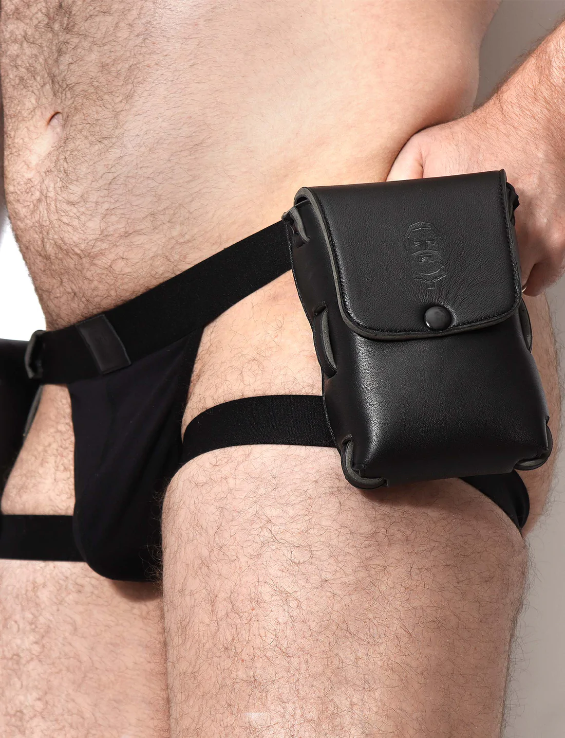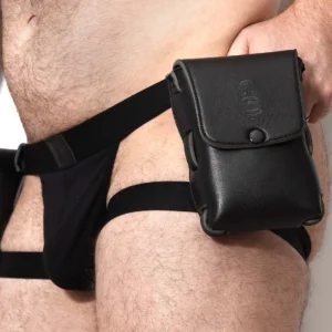 No pockets? No problem! We are now selling the Clip-On Leather Pouch. Made with real leather you can now strip down to your underwear and keep valuable belongings by your side safely and securely. Large enough to keep your mobile device and wallet and any other valuables. With snap buttons on the back, these can clip on to anything with a belt or strap. They could sit on your waist, thigh or calf.