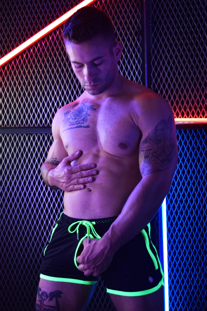 Objects in your rear are bigger than they appear. Or they will be when you’re sportin’ the new REAR ENDER CIRCUIT SHORT. New and improved, the shorts feature fully zippered front pockets (and a hidden interior “stash” pocket), a soft drawstring and waistband, and a black yoke detail that flatters your assets. Last, and certainly not least, a reversible zipper that goes from front to back (and back, back, back again) lets you get busy with your bussy.